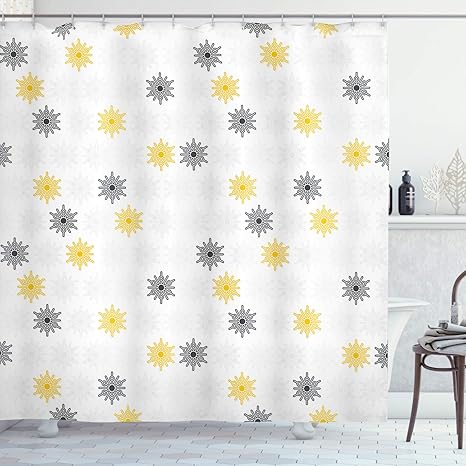 Amazon Com Ambesonne Grey And Yellow Shower Curtain Moroccan Style Modern Sun Beam Flowers With Rounds Dots Image Cloth Fabric Bathroom Decor Set With Hooks 70 Long Pale Grey Home Kitchen - Rich pale yellow and pure white, close crop photo print of a giant sunflower, designed for your bathroom.