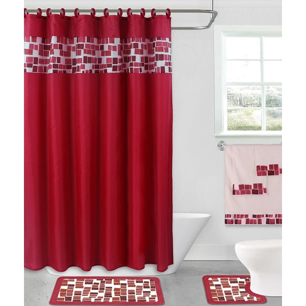 Trending Red Shower Curtain And Rug Set Red dots pattern red & white shower curtain. Red Shower Curtain And Rug Set / Livilan floral shower curtain black red flowers fabric bathroom curtains set with hooks.